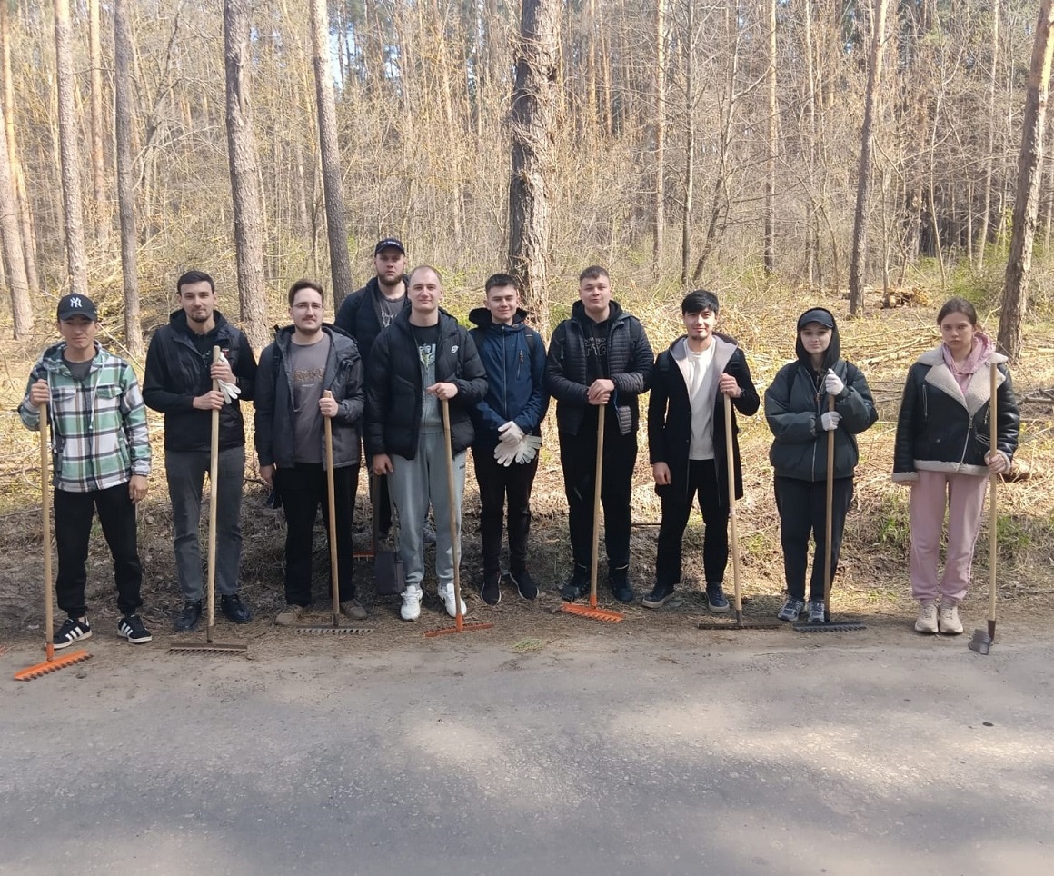 Вместе с инженером кафедры СиУК Воробьевым Е.Л. студенты групп УК-231, УК-221 и СТ-221 отправились на городской субботник в парк «Сосновка».